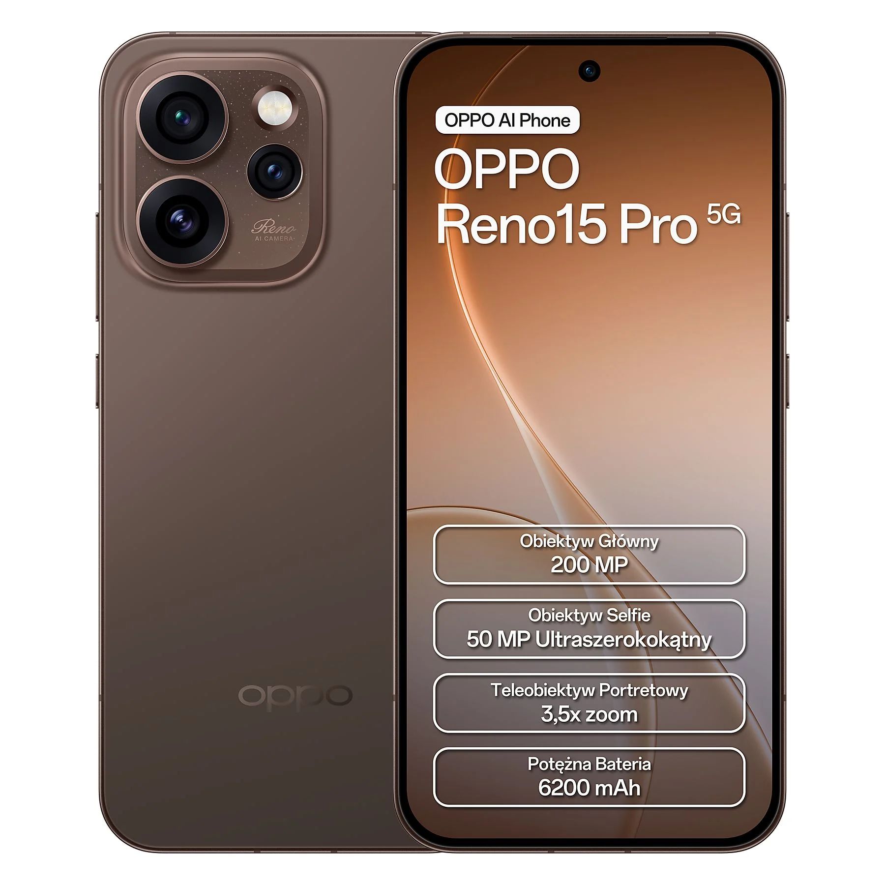 OPPO Reno 15 Pro 5G, 512GB 12GB RAM, Camera 200MP, Battery 6200mAh, Color Dusk Brown, Smartphone
